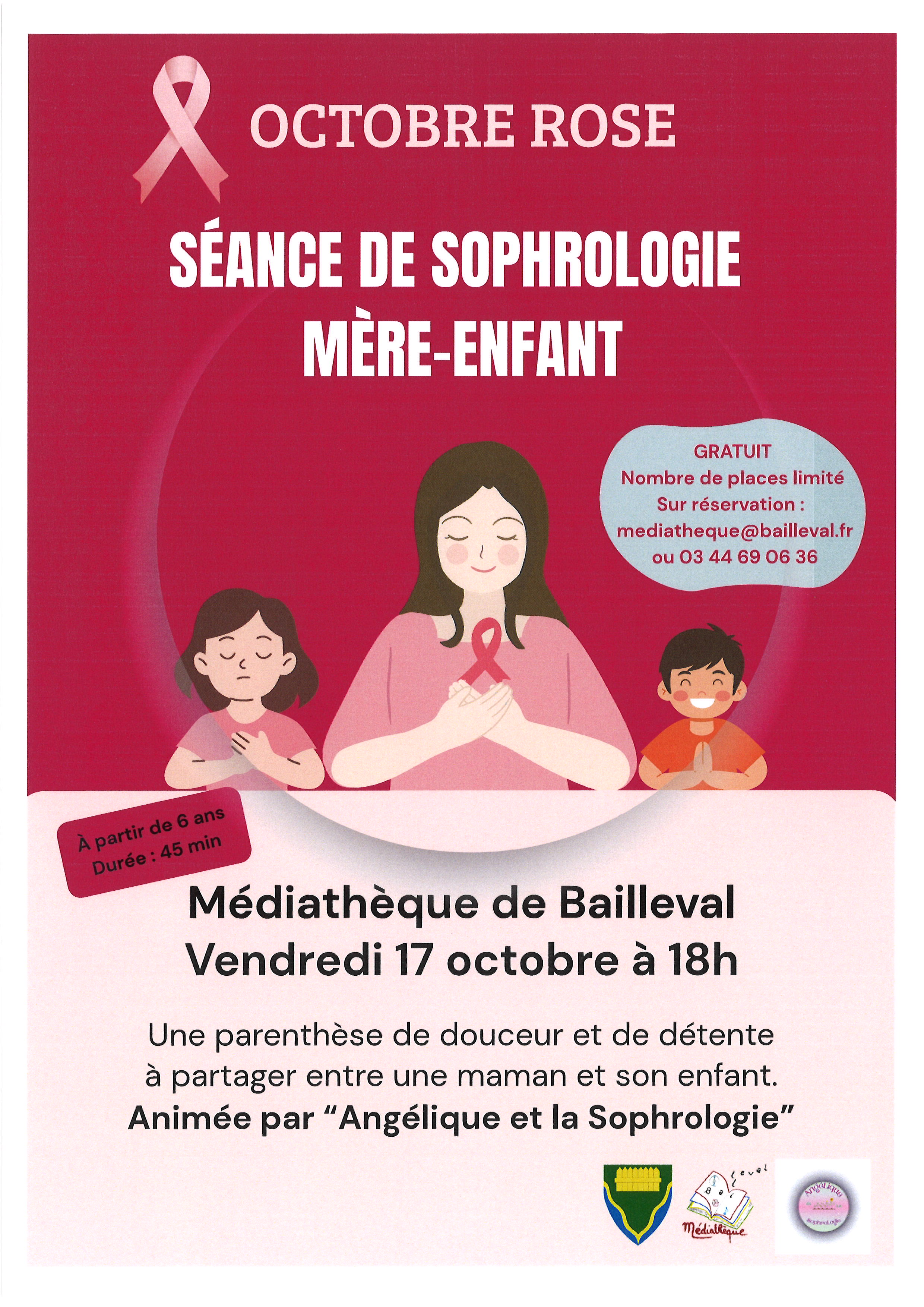 Octobre rose : séance de sophrologie mère enfant à la médiathèque