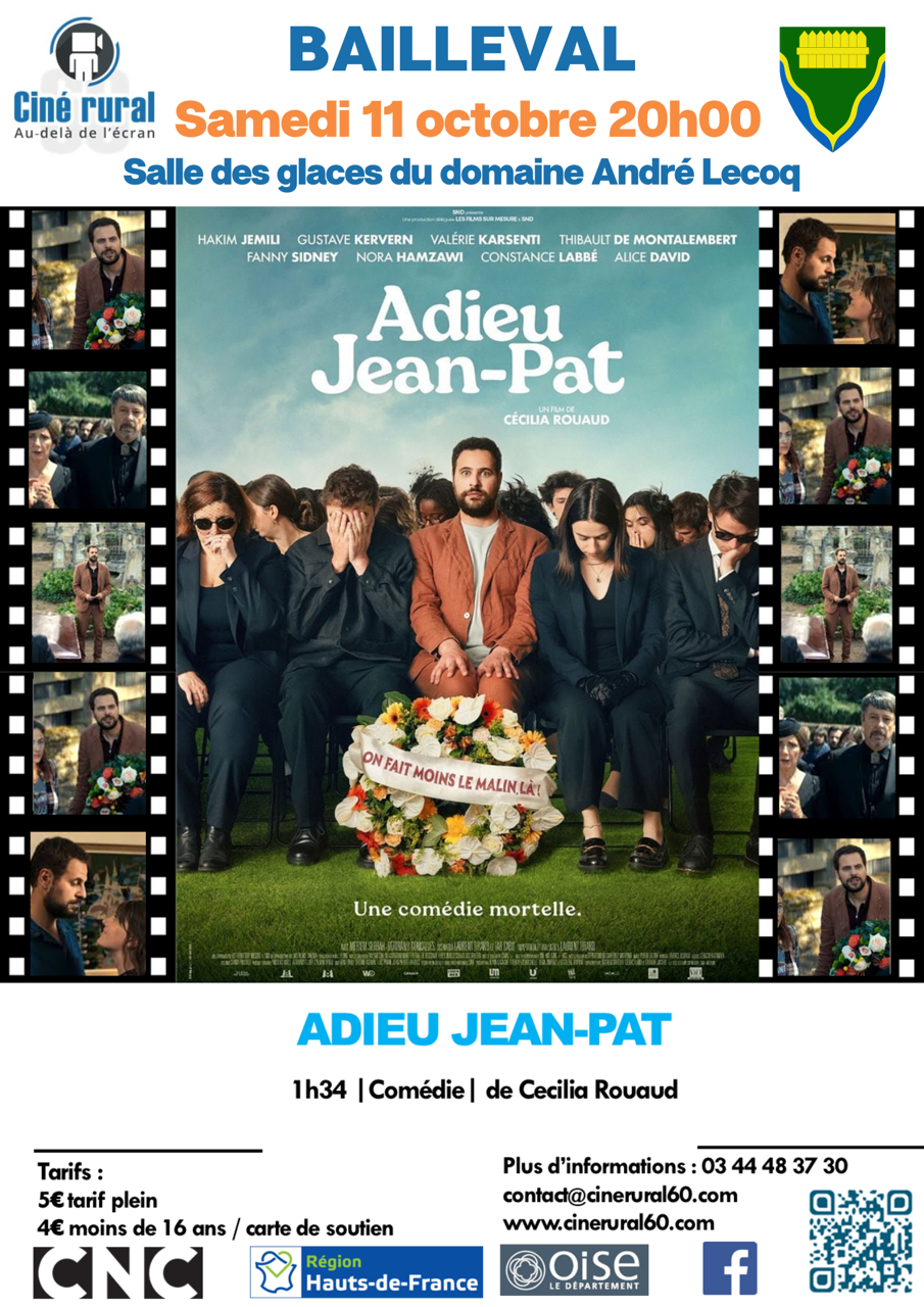 Samedi 11 octobre à 20h à la salle des glaces du Domaine André Lecoq, venez assister à la projection du film "Adieu Jean-Pat" en partenariat avec le Ciné Rural 60 - Circuit de cinéma itinérant