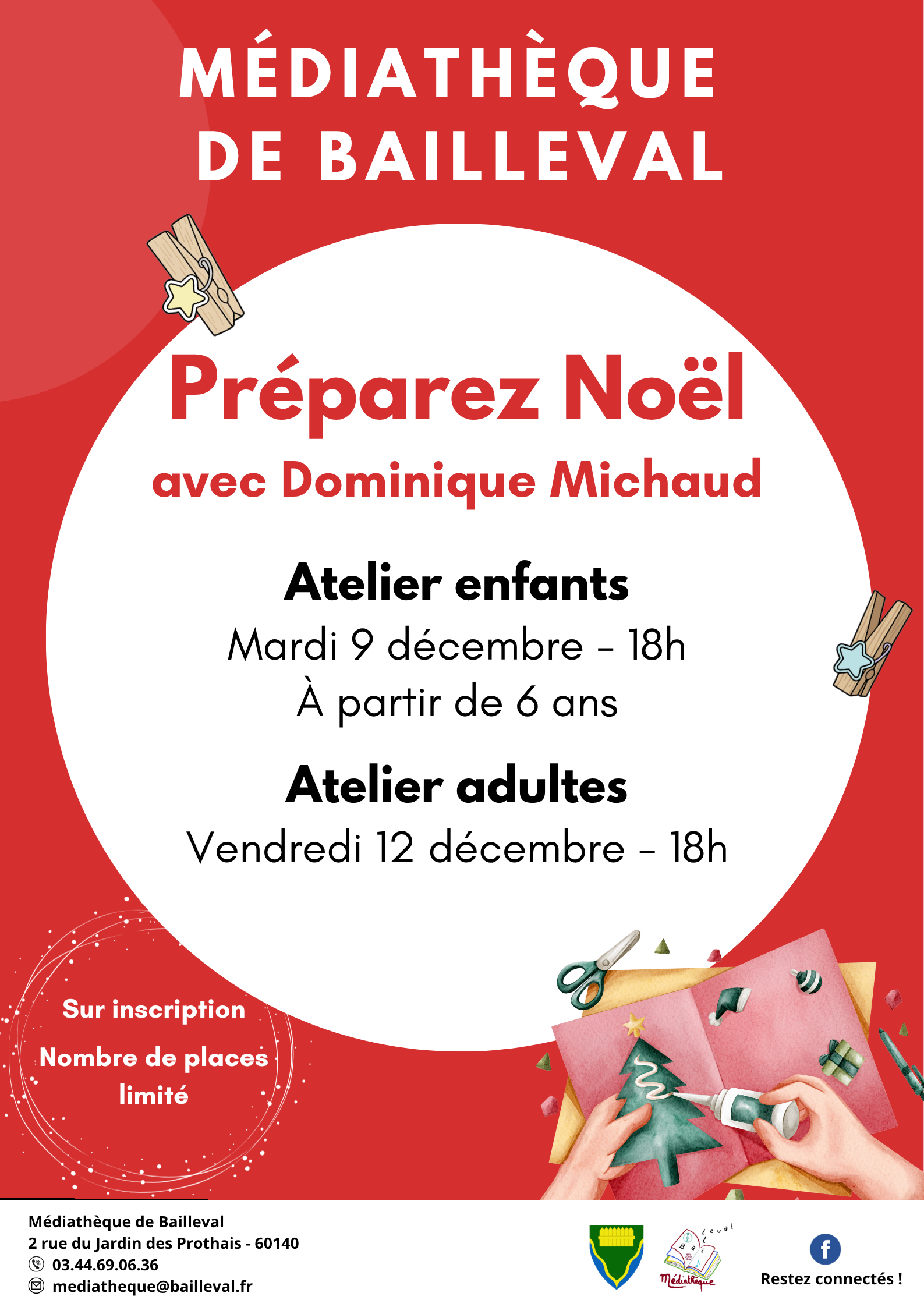 - Atelier adultes : Vendredi 12 décembre à 18h