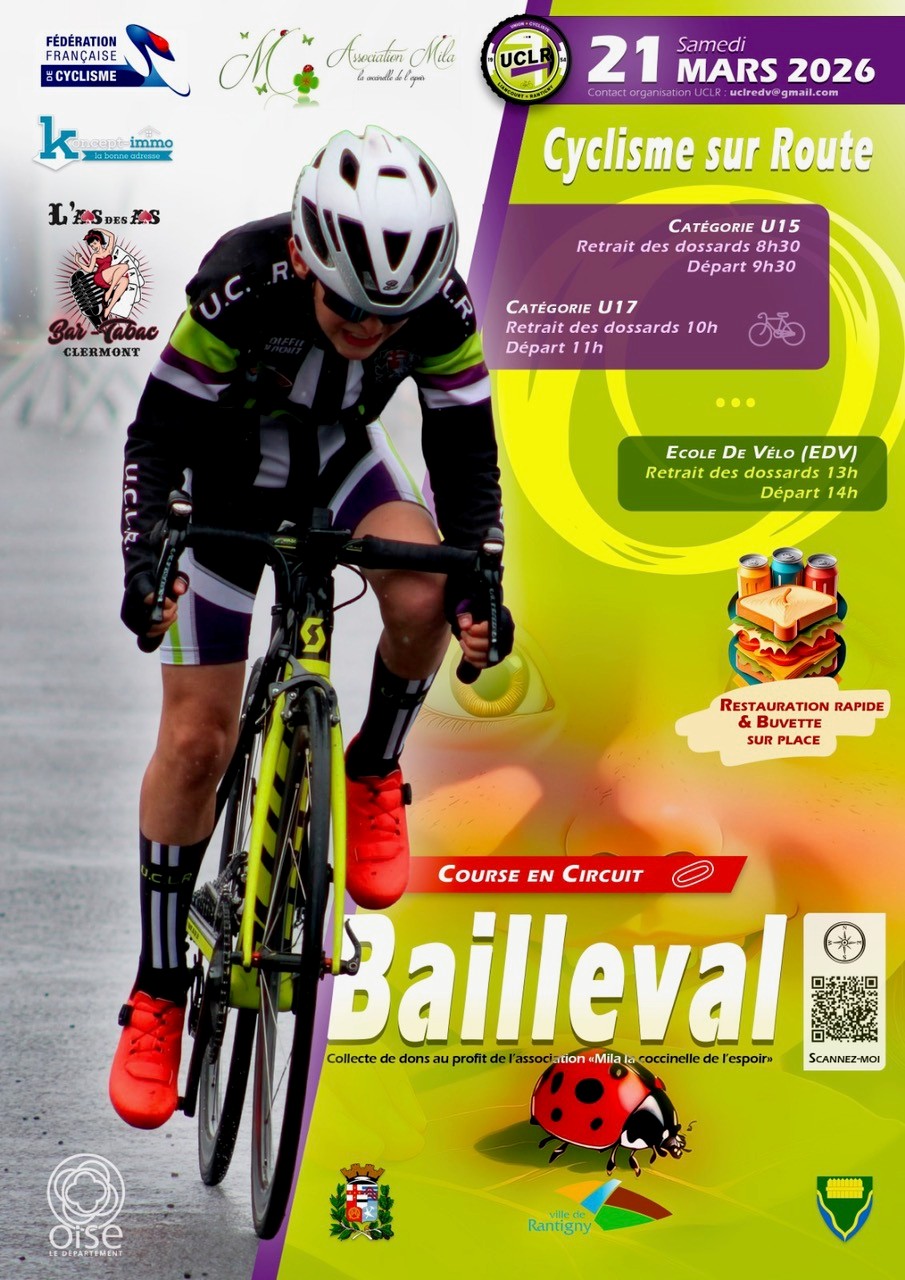 Le club de cyclisme UCLR Liancourt organise une course sur la commune de Bailleval le samedi 21 mars 2026 en partenariat avec l'Association Mila, la coccinelle de l'espoir.